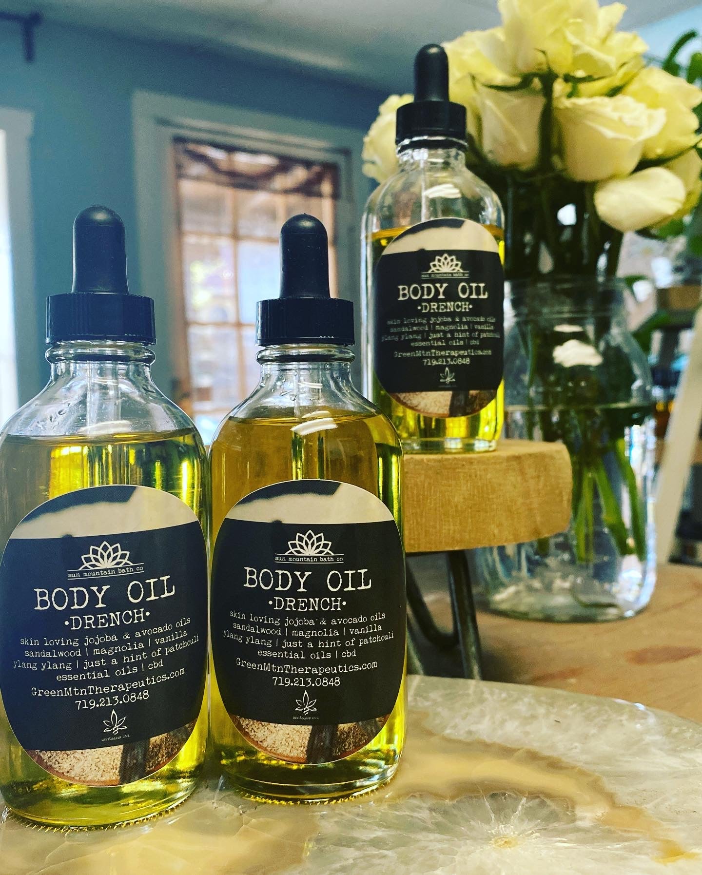 Nourish your skin with our Drench Body Oil. Made with 100% organic base oils and infused with the soothing scents of patchouli, sandalwood, and vanilla essential oils, this body oil will leave your skin feeling hydrated and rejuvenated. Relax and indulge in a luxurious experience with every use.